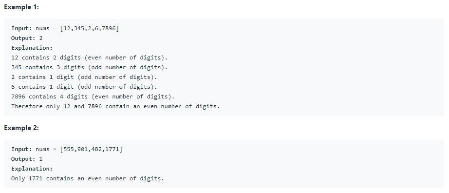 주어진 정수 배열의 각 항목 값의 길이가 짝수인 갯수를 구하여 반환한다.