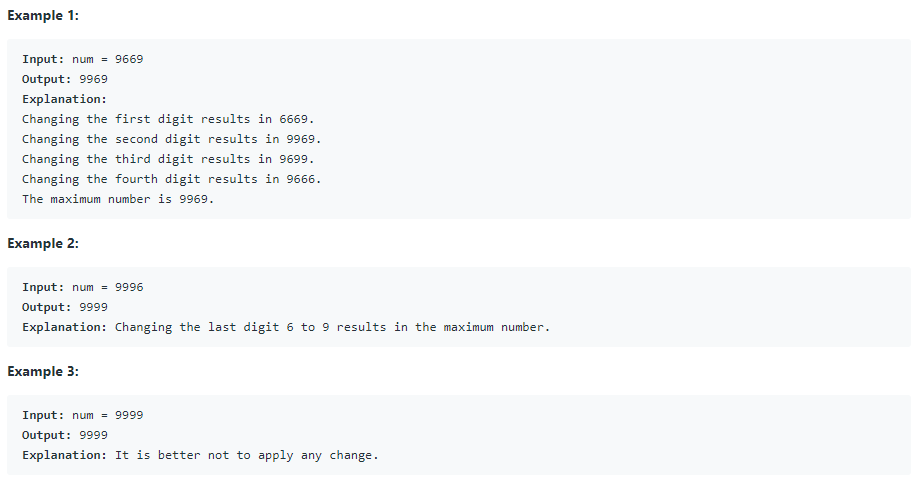 6과 9로 구성된 4자리 숫자의 한자리만 바꾸어서 가장 높은 숫자를 반환한다.
